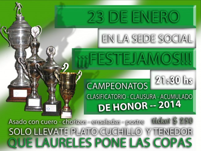 15 ene 2016 . NOTICIAS . El próximo 23 de enero festejamos los logros deportivos alcanzados en el 2014 y también las metas logradas en lo edilicio, patrimonial, la concreción de proyectos presentados y aprobados y los que se están por presentar..arriba Laureles!!!