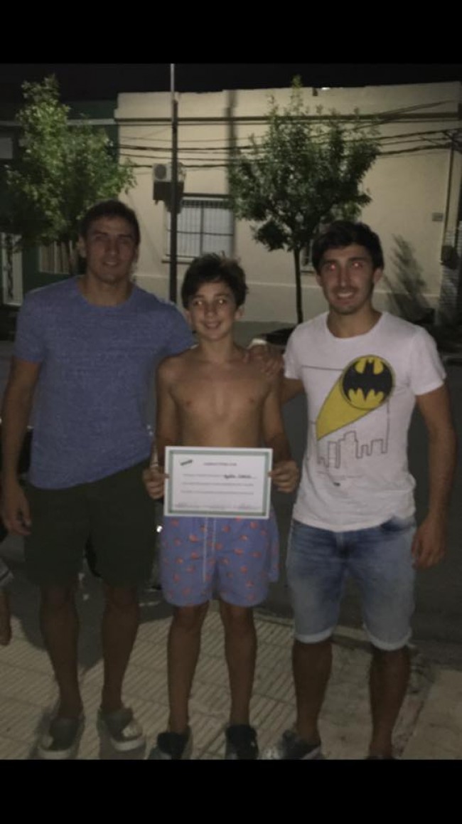 Los Licenciados en Educación Física que estuvieron a cargo, Bruno Silva y Juan Pablo Leguiza, hicieron entrega de las constancias de participación a los chicos que participaron de la actividad. Algunos de los chiquilines que continúan entrenando con la Sub 15 de Laureles, y otros que fueron visitados en sus domicilios para recibir contentos su diploma. Linda actividad, abierta a chicos de todos los equipos de entre 13 y 15 años, que trataremos se pueda repetir en el futuro. Para aprender jugando. |