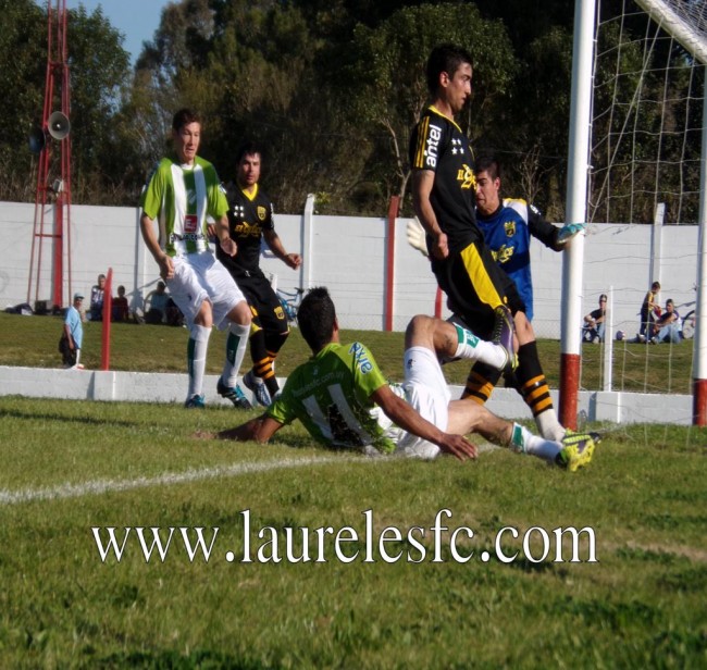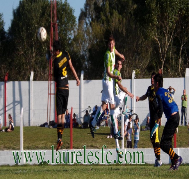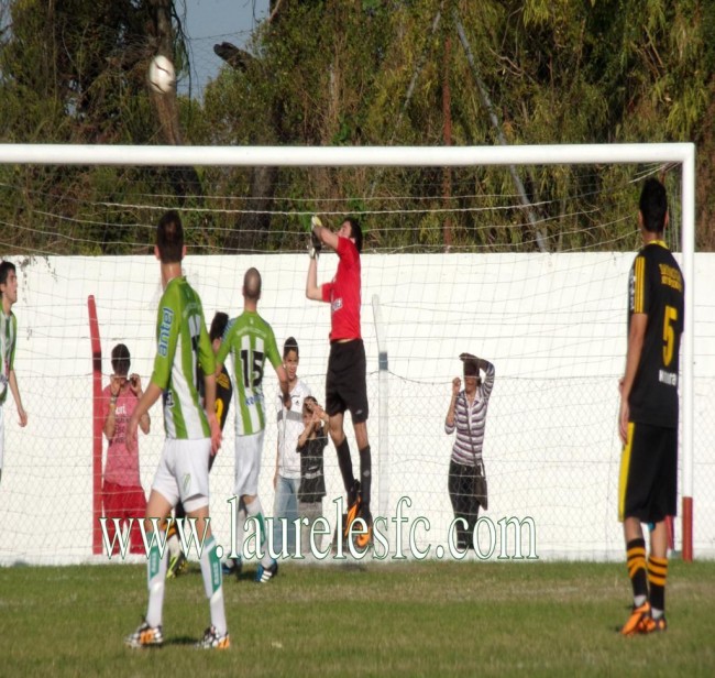 El domingo pasado, en un gran partido jugado por Laureles, vencimos justamente a Tulipán F.C que hasta ese momento compartía el liderazgo de la tabla de clasificaciones junto a Laureles. El encuentro comenzó parejo pero poco a poco Laureles fue dominando el mismo y generando situaciones de gol claras, basta con mencionar al final del primer tiempo una increíble que desperdicia F. Pelletti con el arquero ya vencido y el arco libre lo que hubiera sido la ventaja merecida para ir al descanso, a nadie le hubiera sorprendido que Laureles se fuese ganancioso por mas de un gol al termino del primer tiempo, pero esto no ocurrió y el mismo se fue con empate a cero. El segundo periodo continuo con las mismas características que el anterior pero a diferencia el dominio se vio reflejado en el marcador cuando a los 18 minutos de esta etapa final F. Pelletti marca el tanto de apertura dando la tranquilidad necesaria para enfrentar el resto del encuentro, dicha tranquilidad se vio amenazada cuando expulsan por doble amarilla a I. Cano lo que nos lleva a disputar los últimos minutos con un hombre menos y cuando todo indicaba que podíamos pasar alguna situación de peligro en nuestro arco el equipo se mostró aplomado sin dejarse llevar por delante por el rival y hasta sacando fuerzas para atacar, tanto es así que a falta de 2 minutos para la finalizacion del encuentro tras corrida fantástica de L. Palmina este desborda y realiza centro atrás y M. Ramirez marca el segundo gol dando asi las cifras definitivas al marcador. Formación inicial: C. García (c) L. Garcia C. Villalba D. Rodriguez G. Amarillo I.Cano L. Palmina D. Lacerra F. Pelletti M. Laborda C. Torreira Suplentes: C. Salaberry N. Cerrilla B. Golly G. Costa L. Marquez M. Ramirez J. Rios Cambios: J. Rios por C. Torreira ( 2T ) L. Marquez por M. laborda (2T ) M. Ramirez por D. Lacerra ( 2T) Goles: F. Pelletti 18 minutos 2T ( 1-0 ) M. Ramirez 43 minutos 2T ( 2-0 ) DT: M. Cairus – A. Porro P. Fisico: W. Graziani