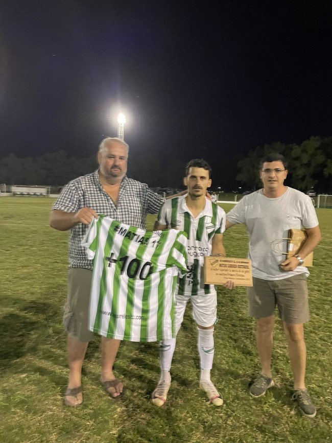 camiseta con la leyenda “#Matias17 +100”. Se trata de nuestro máximo goleador, y del